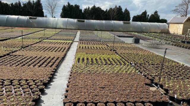 Het is een arbeidsintensieve manier van kweken, we hebben de planten meerdere malen in de hand voordat ze daadwerkelijk onze kwekerij verlaten. Van het moment dat de stek trays binnen komen op onze kwekerij, opgepot worden in een potgrond mengsel waar osmocote korrels in verwerkt zijn die langzaam voeding afgeven aan de stekjes, om vervolgens uitgezet te worden in de koude kas of buiten op de kwekerij. Het jonge gewas krijgt nu de tijd om goed door te wortelen en natuurlijk te groeien. Al snel is te zien dat de plant begint te groeien en wordt er regelmatig gekeken hoe de planten zich ontwikkelen in de pot.